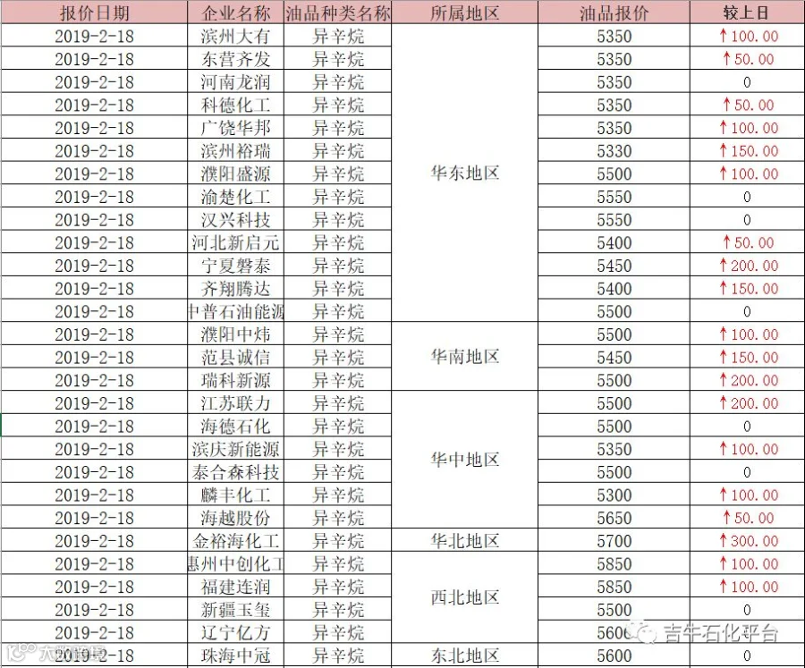 吉牛2月18日异辛烷报价