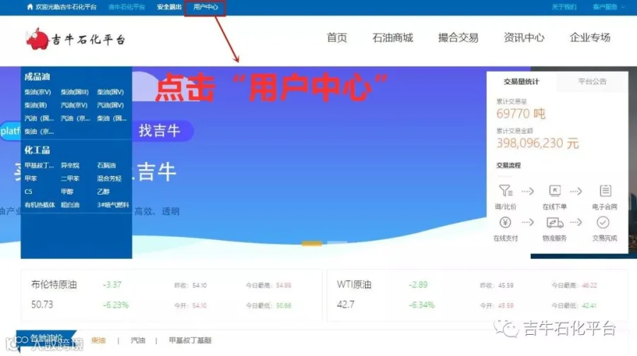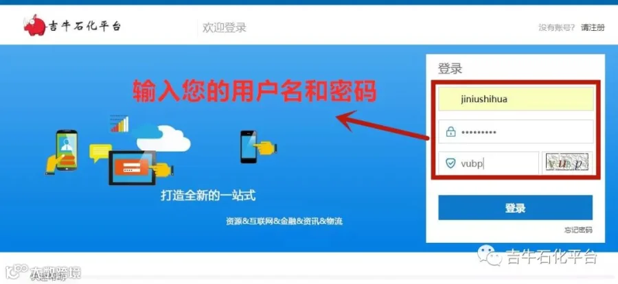 1.进入吉牛石化平台官网点击左上角的我要注册