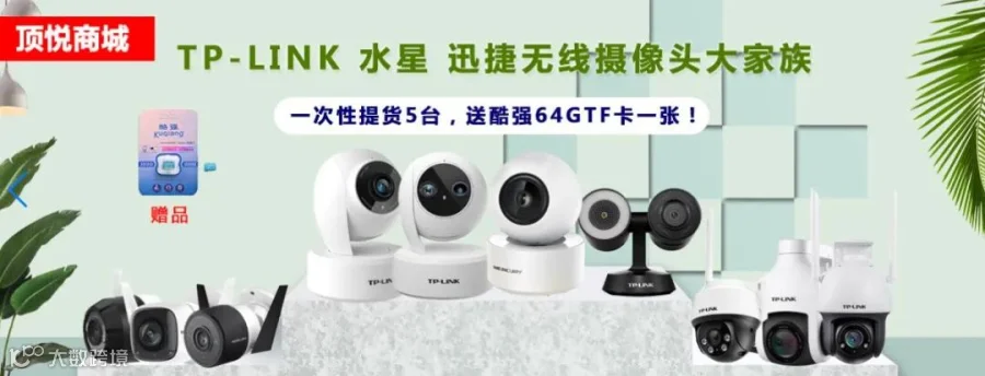 六:TP-LINK 水星 迅捷 任意无线摄像头一次性提5台,送酷强64GTF卡一张!