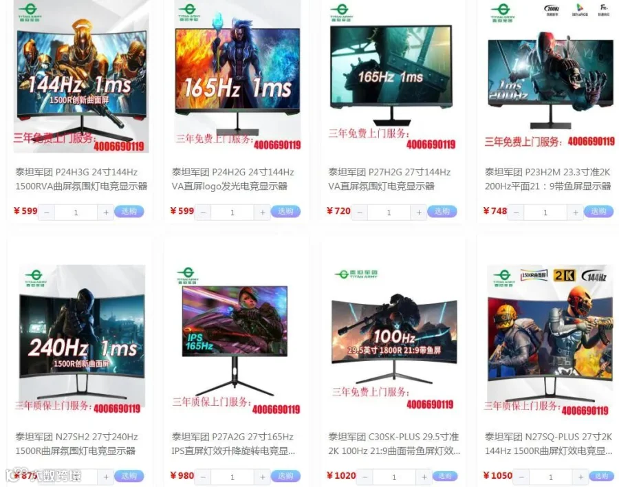 泰坦军团显示器入驻顶悦商城,泰坦军团品牌专注于电竞高分显示器开发销售,以网吧占比高,品质好,售后服务好著称!电竞显示器卖出办公商用显示器的价格.