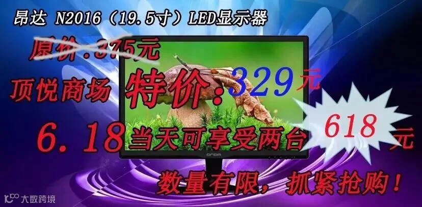 6.18当天购昂达N2016(19.5)两台只需要618元,相当天309元/台,数量有限,售完即恢复原价。