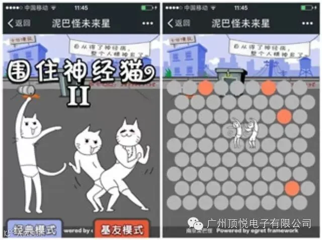 “其实在‘围住神经猫’的前期我们是调低了难度后上线的,用较低的门槛来吸引用户多次参与和分享”,在接受腾讯科技采访时,该游戏的项目经理秦川表示。看到“围住神经猫”获得的成功和带来的巨大传播效果后,开始逐渐增加游戏的难度,比如刚刚更新的“围住神经猫2”的“基友”模式。