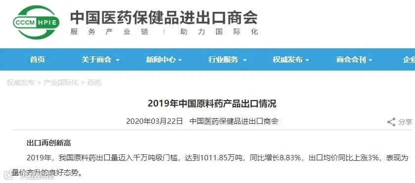 根据中国医药保健品进出口商会的数据显示,2019年我国原料药出口全年累计出口各种原料药达1011.85万吨。其中,阿莫西林三水盐出口1.5万~1.6万吨,成为半合成青霉素类原料药中出口数量最大的产品。由于阿莫西林在国内外临床需求量较大,我国阿莫西林原料药扩产速度很快。据中国产业研究中心的报道,目前我国阿莫西林原料药总产能已达3.76万吨。