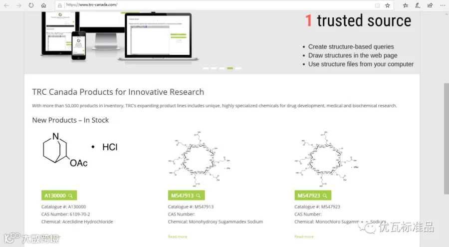 针对各种标准品信息查找痛点,广州优瓦科技有限公司作为TRC国内最大代理商、多个进口品牌的官方授权代理商以及独家代理商,牵头打造了业内最完善的标准品数据管理平台,定期与品牌厂商数据同步,并通过官网与客户共享数据。