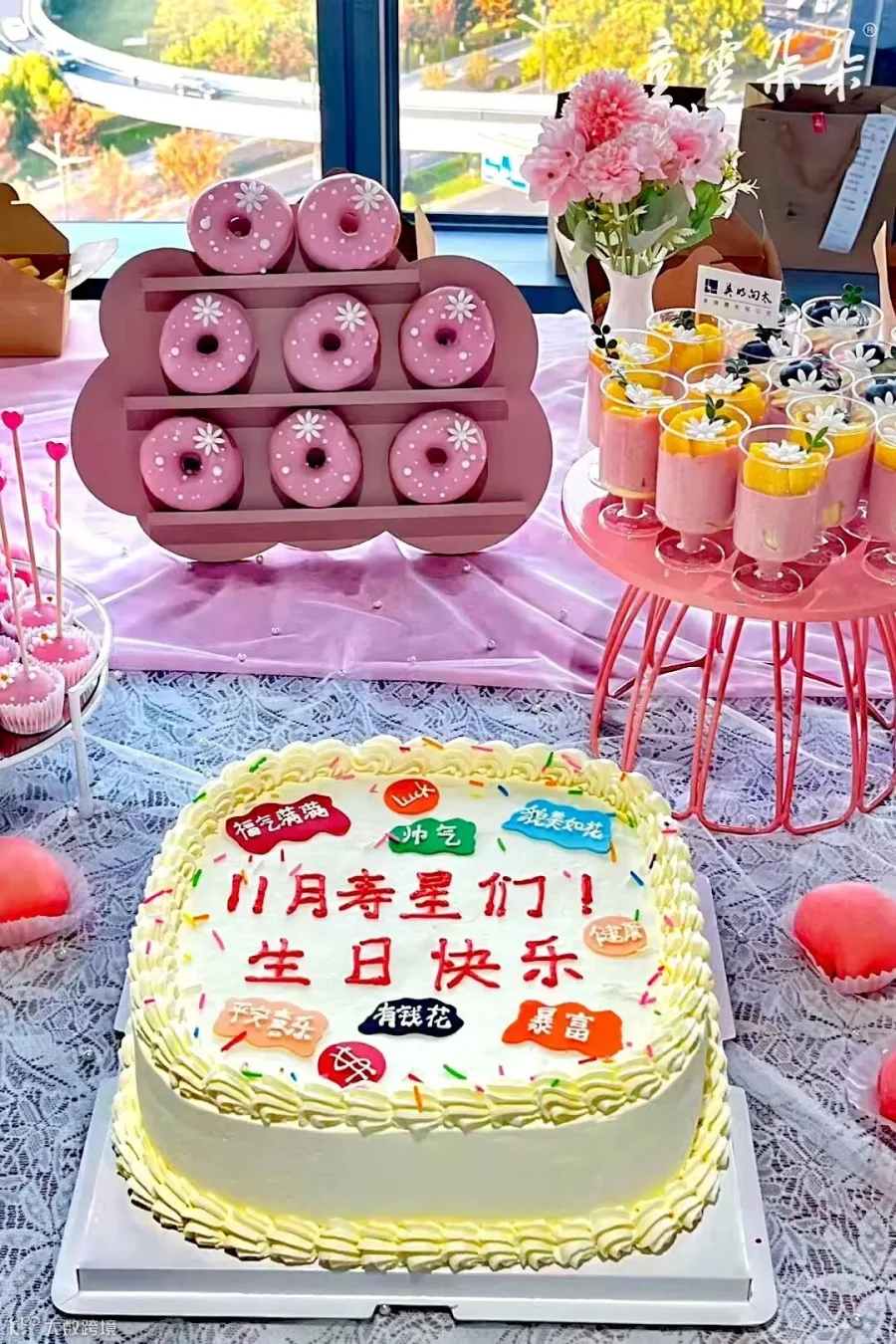 当天上午,根据向太公司的要求,童云朵朵公司集中力量,精心设计,精确调味,精准服务,为其制作了粉色甜甜圈、粉色慕斯杯、粉色雪媚娘、水果蛋糕、一口肠、披萨、三明治、肉松小贝、水果奶油纸杯、粉色丝绒卷、推推乐、棒棒糖蛋糕、草莓泡芙迷你、草莓大福以及10寸粉色大蛋糕等十余个品种的糕点,并用制式的托盘(架)摆放的井井有条、错落有致,成为向太公司员工生日会上的一道靓丽风景。伴随着生日快乐的歌声和欢呼声,“寿星”与员工们品着糕点,相互祝福,沉浸在幸福的喜悦当中。