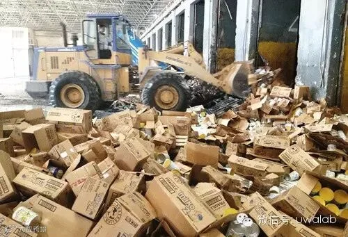 在高安屯垃圾焚烧厂上,我们可以看到被篡改保质期的洋奶粉,罐体底部清晰地印有“2015年9月20日、21日、22日”的保质日期,但细看会发现,旁边还模糊印着一个2014年的日期。这些奶粉经过铲车碾压后,仅几分钟就被焚烧殆尽。“企业很可能将快到保质期的奶粉保质期进行了篡改,以延长它的货架期。”