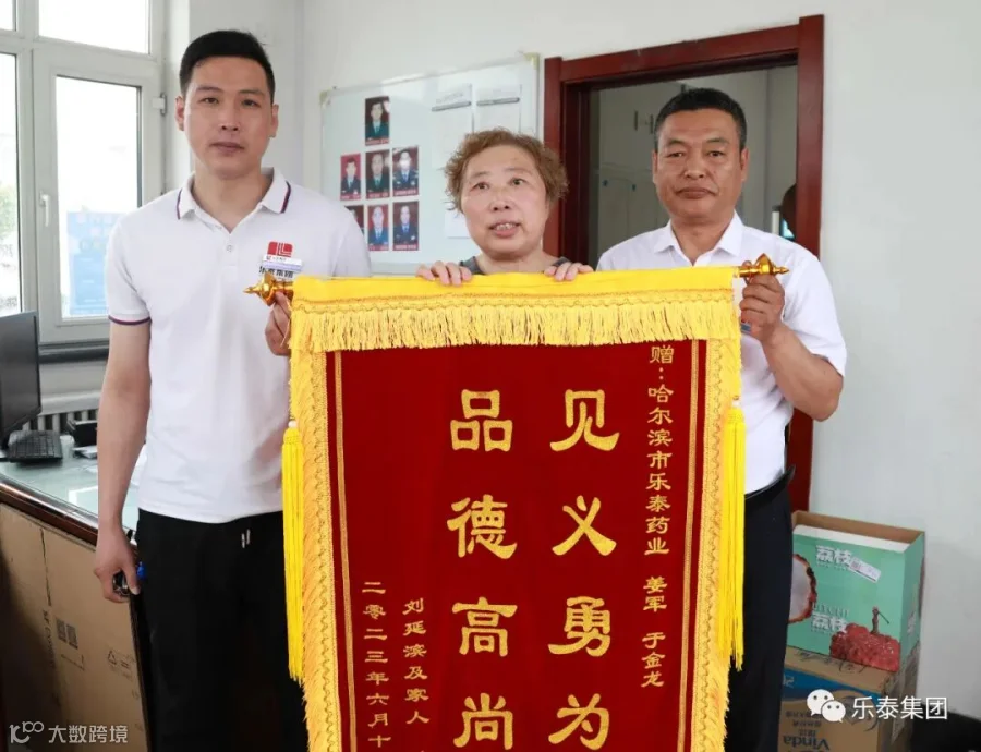 老人的老伴一直在打听姜军、于金龙的姓名,阿姨说:“我问了好几次,他们都说做好事不留名,不告诉我,回到家我也在惦记这件事,将他们救了我老伴的事告诉了远在北京工作的儿子,儿子也说必须要感谢他们,于是我又给他们打去电话,多次联系且在我的不断追问下,他们才告诉我是乐泰集团的员工,有了这个信息后,我立马想到要做一个锦旗感谢他们,不然30多度的天气,我老伴一直在地上起不来的话,就很危险了。”6月20日,两位老人冒着大雨来到了乐泰并亲自为姜军和于金龙送上了锦旗,面对两位老人的不断感谢,二人只是反复在说一句话,这是我应该做的。