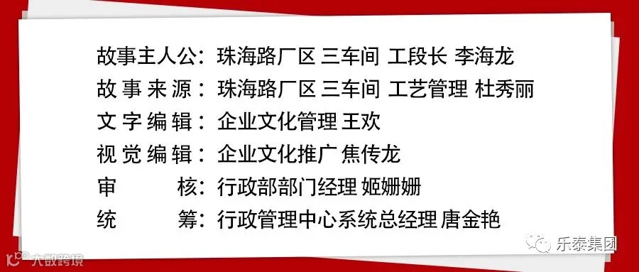 乐泰工作22年以来,李海龙始终奉行一心一意钻研技术,一点一滴苦练本领,为乐泰默默无闻贡献自己的力量,无论获得过怎样的荣耀,他都不骄不躁,而是以更大的热情全身心投入到本职岗位上。日常工作中,对于任何事务总会认真分析,潜心琢磨,认定好的事,就会持之以恒坚持做下去,拿到自己想要的成果。同时也将降本增效牢牢记在心中。
