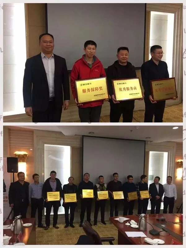 会议下半场,陕汽宁夏营销同盟会为常任理事会单位做授牌仪式,共为9家单位授牌。随后大客户部史经理代表陕西重汽为荣获陕汽2018年度优秀经销商、优秀服务商、服务保障单位颁奖。陕汽宁夏区域、产业链代表为区域优秀经销商颁奖。