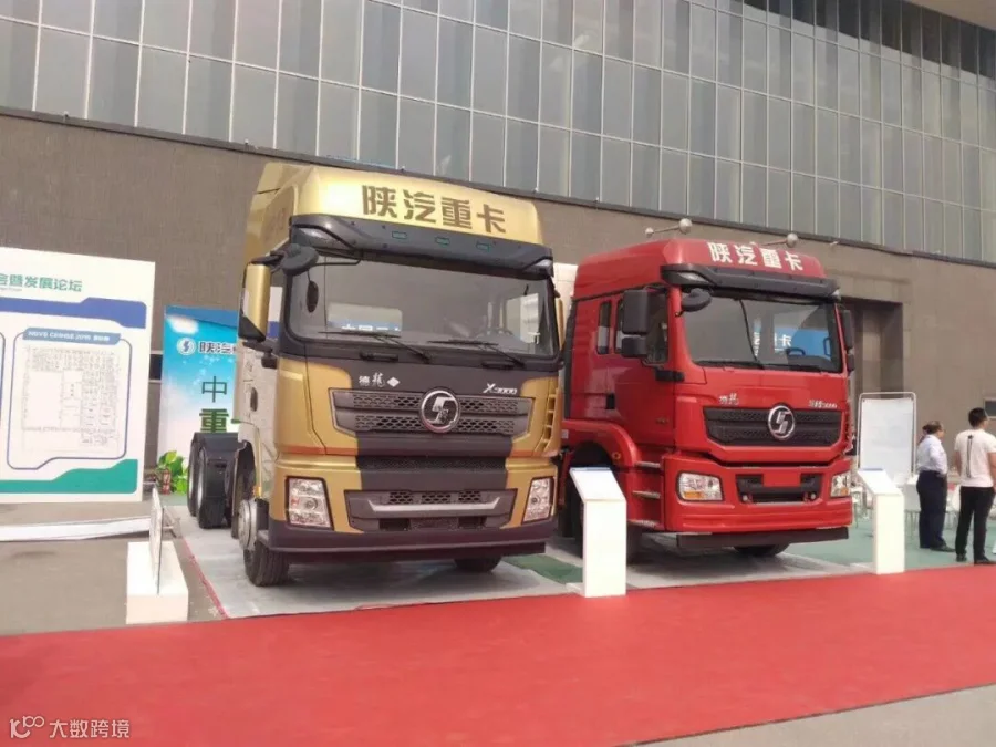 此次展会,陕汽重卡携德龙X3000黄金版LNG大马力牵引车、德龙新M3000 6×4CNG危险品运输牵引车。