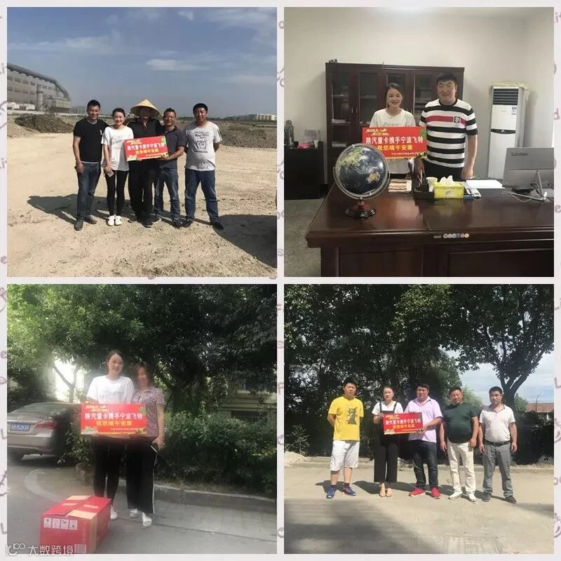 2018年6月15日、16日,陕汽宁波办事处携宁波地区经销商送安康活动,以“情浓端午,我只‘粽’意你”为主题的陕汽重卡关爱卡车司机欢乐嘉年华在宁波地区举行,为了感谢新老客户对陕汽重卡的大力支持,在端午佳节来临之际为客户朋友送安康,送“粽”情。宁波飞特汽车销售人员分对宁波地区工程自卸车市场以及水泥搅拌车市场分为两队对宁波地区客户进行重点拜访,将一份份载满陕汽重卡浓浓心意的粽子送进陕汽客户的手里.