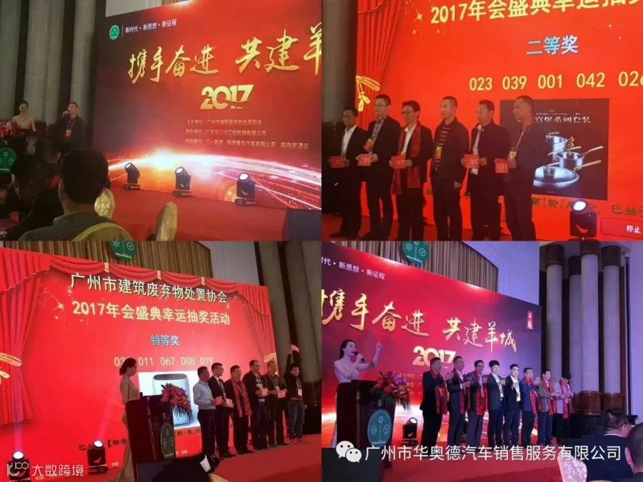 下午16时,会议结束后,协会安排各参会成员及嘉宾共进晚宴,在晚宴开始前,大屏幕顺序播放各会员单位的企业简介视频,给大家展示了不同的企业管理文化,到了抽奖环节,大家热情高涨,协会领导为中奖嘉宾们颁奖并讲话,二等奖奖品由广州市华奥德独家赞助。