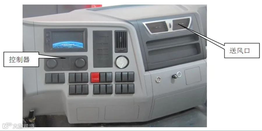 空调系统主要由压缩机、过冷式冷凝器、空调本体(位于驾驶室仪表盘下,包括蒸发器、膨胀阀、暖风芯体、操控联动机构) 、管路系统和电控系统组成。
