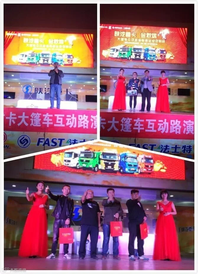 陕重汽安徽办事处区域总经理侯斌向到场的客户介绍了陕汽集团起家于军车的发展历程,当前以客户为中心的价值营销理念,以及在重卡产品研发和制造的独特优势,还有本年度前九月在国内重卡民品销售取得优异成绩。活动承办单位亳州济源和阜阳伟业精心准备了丰富的演艺节目和精美的礼品,表达对当地客户的浓浓情意和回馈之意。