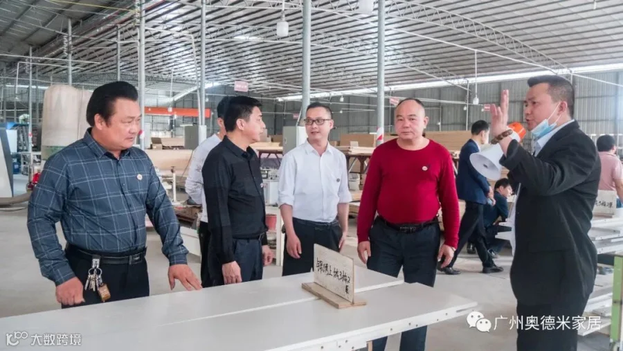 高州市建材商会各领导班子成员莅临奥德米家具厂指导工作,并对奥德米的团队及工厂设备、规模、服务理念等各方面给予充分的肯定