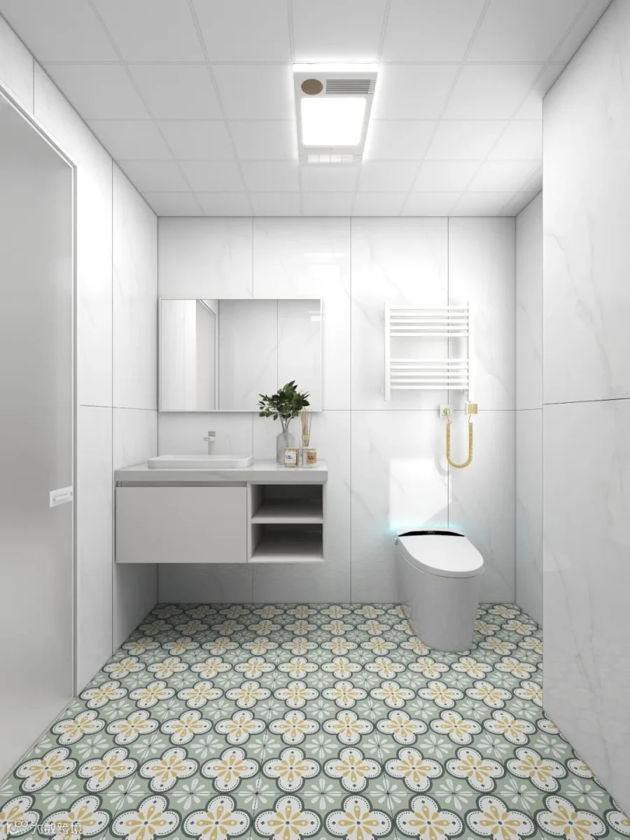 卫生间:600x1200连纹通体中板【白月光】 400x400亚光花砖【H203】