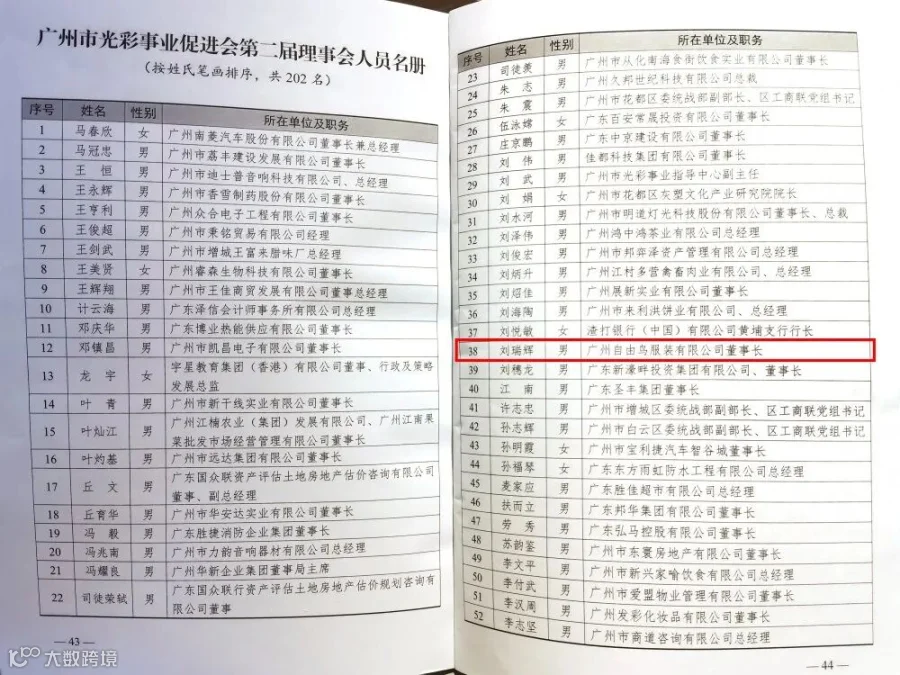 广东自由鸟服装有限公司董事长刘瑞辉当选广州市光彩事业促进会第二届理事会常务理事