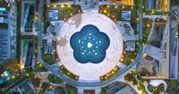 ▲武林广场:场处武林门地片内,故名。周围新建高楼林立,遂成杭城繁华而花园式的中心广场。一九八五年建成广场喷泉,泉池直径为36米,形似五瓣梅花,花芯为跳红绸舞的三少女塑像。