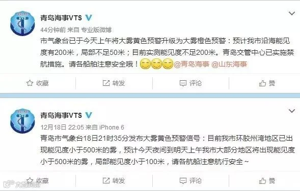 中央气象台,信德海事提醒:受大雾和低能见度影响相关海域/港口的船舶,请注意作业安全、航行安全。