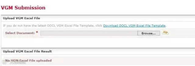 ↑使用Excel模板填写VGM数据后可以上传可以提交