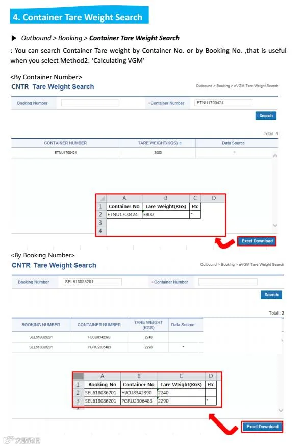 3. VGM data via booking or shipping instructions