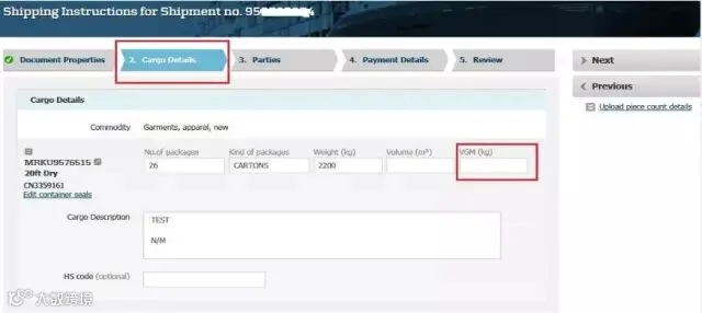 6)在“Cargo Details”界面可以找到VGM数据项