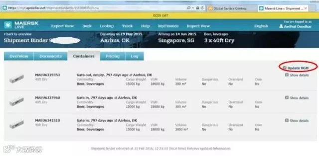 马士基VGM 提交方式: