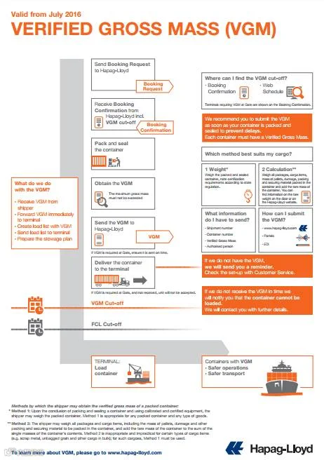 从2016年7月1日起,我们将不被允许将没有 VGM 信息的货物装载上船。