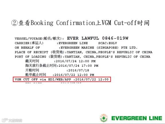 VGM截止期限与船公司截止重箱进场时间一致。