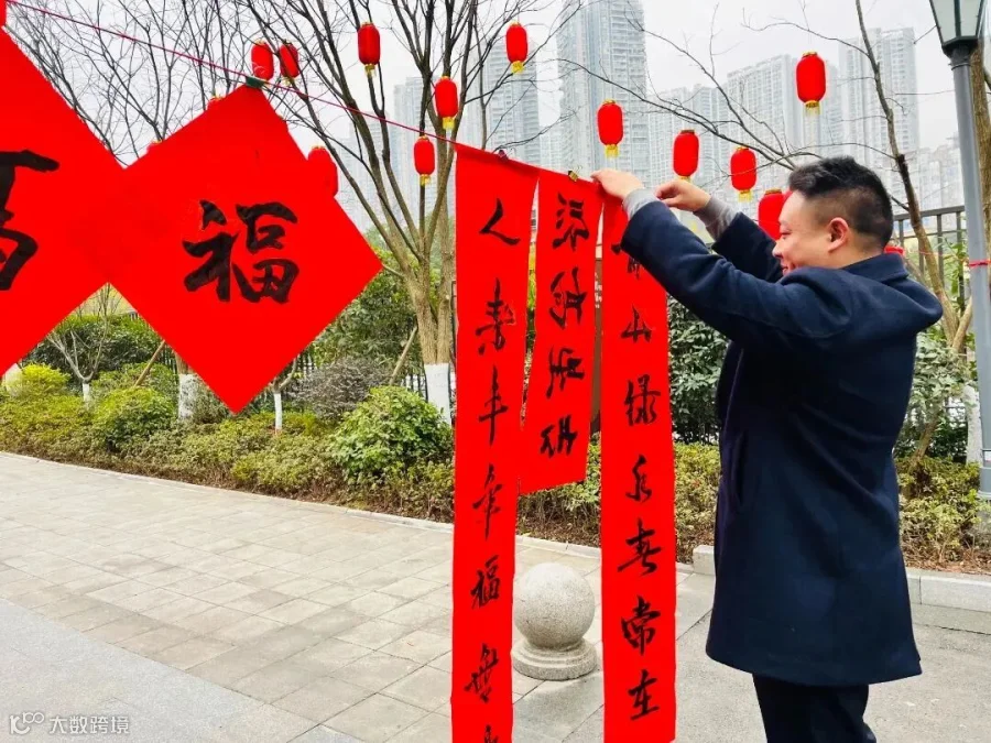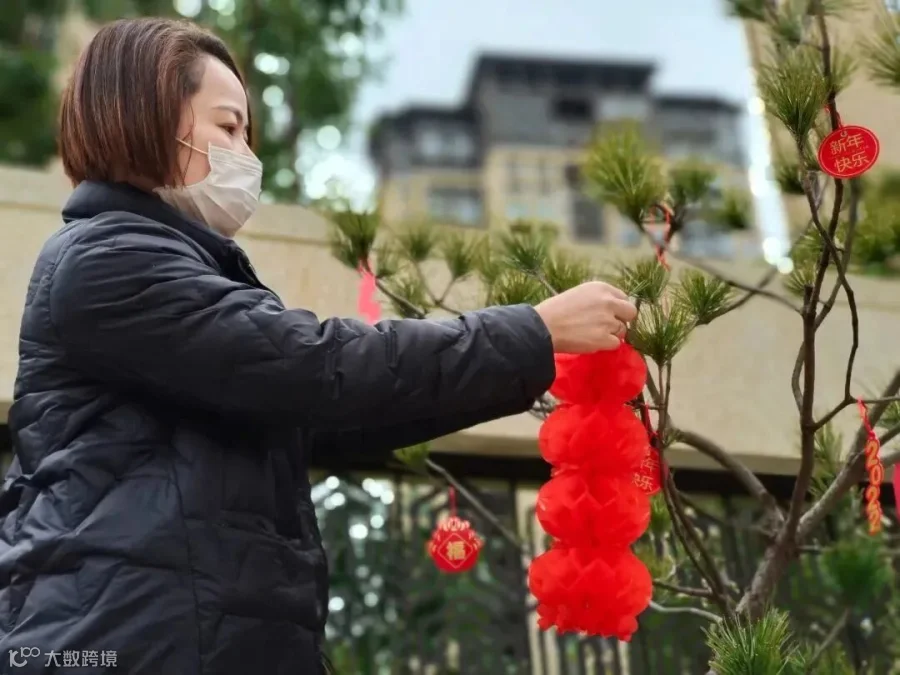 挂灯笼、贴福字,张灯结彩,喜庆新年。在客服部门的努力下,园区内呈现出极具节日特色中国红。金辉年味,四处洋溢。