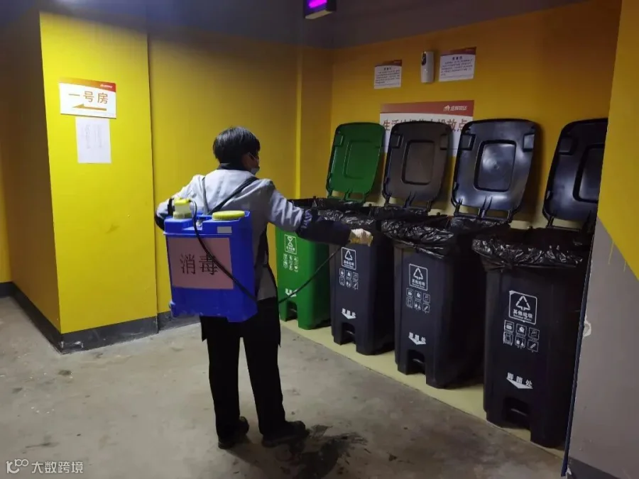 环境消毒,是春节前最重要的工作之一。分类垃圾箱,电梯轿厢,公区死角……这些区域,每天保持既定频率的全覆盖消毒。