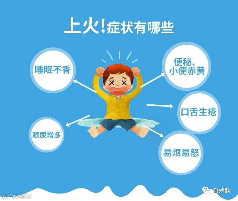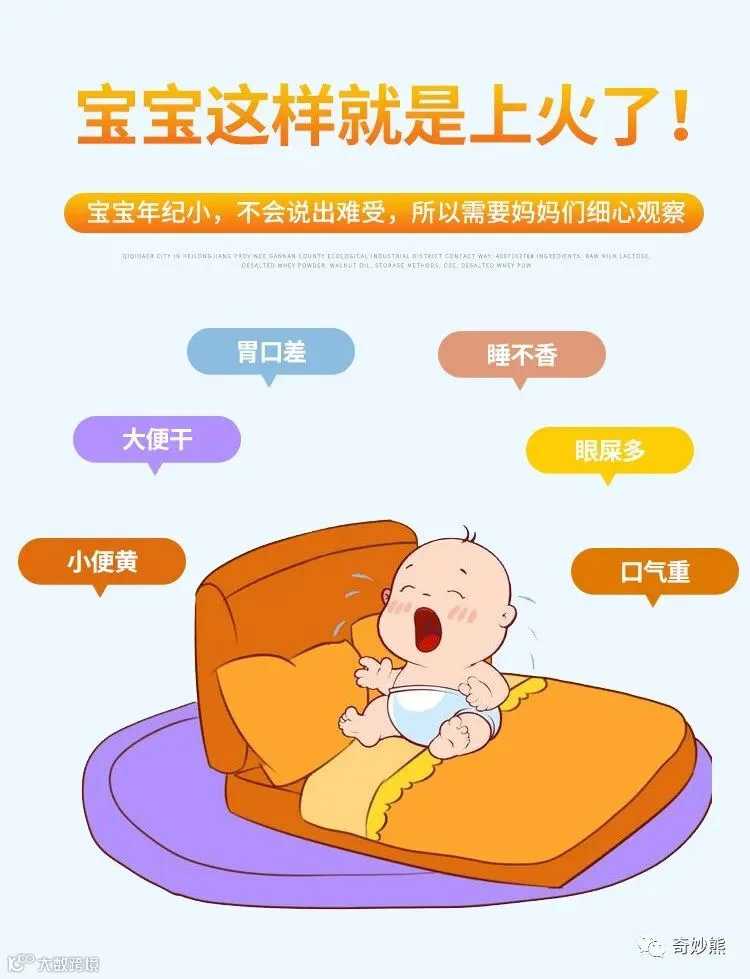 宝宝生长发育迅速,需要摄入足量的食物,以满足身体发育需要.。而宝宝的脾胃娇嫩,,胃肠功能尚未完善,容易出现胃肠积食和积热,从而引发上火。常见的原因有: