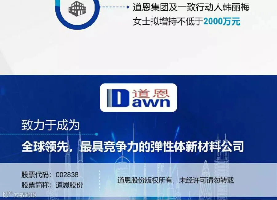 成立于2002年,2017年在深交所挂牌上市,现为国家认定高新技术企业和国家单项冠军产品企业。道恩股份专业从事热塑性弹性体、改性塑料、色母粒、可降解材料、熔喷料、共聚酯等产品的研发、生产、销售与服务。