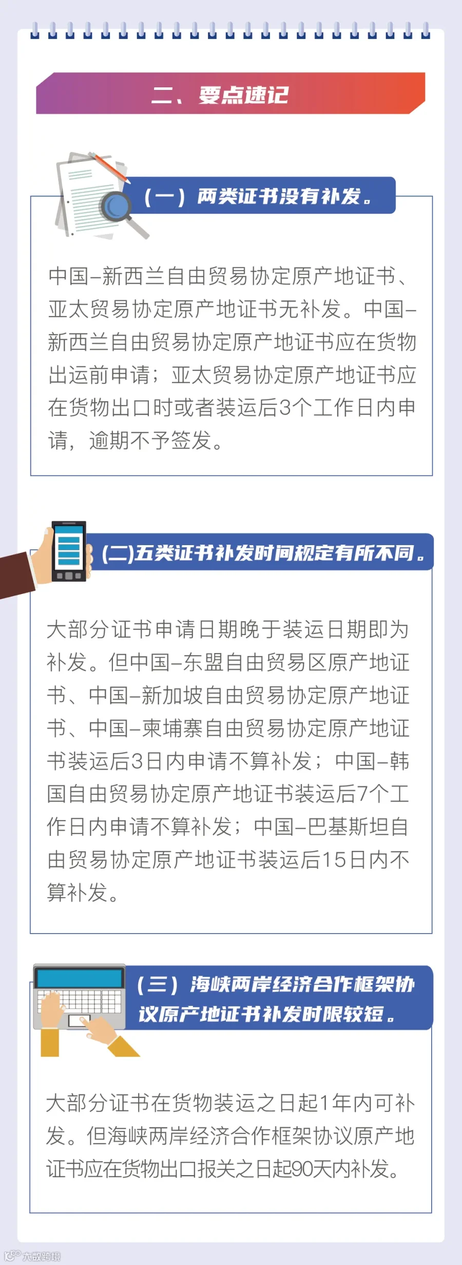 1.《亚太贸易协定原产地证书》,无补发,在出口前或者装运后3个工作日内申请。