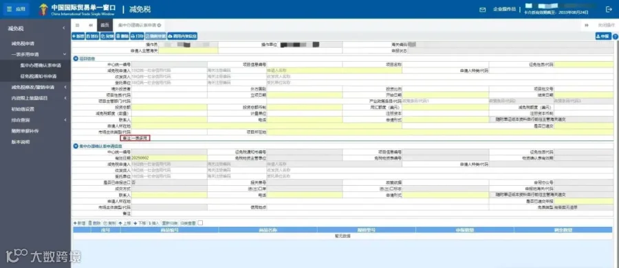 2.此环节利用报关单申报要素自动补齐《征免税通知书》。