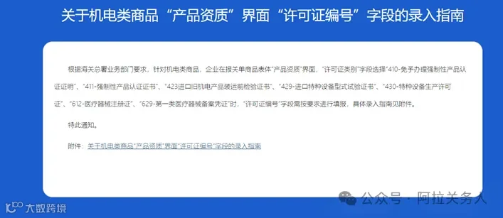 四种特殊情况的具体定义 详见“中国国际贸易单一窗口”网站2022年12月29日通知公告栏(系统公告):《关于“单一窗口”货物申报系统涉及机电类商品校验规则调整更新的通知》随附《机电类商品“产品资质”界面“许可证编号”字段的录入指南》附件《有关情形说明》。详见下图: