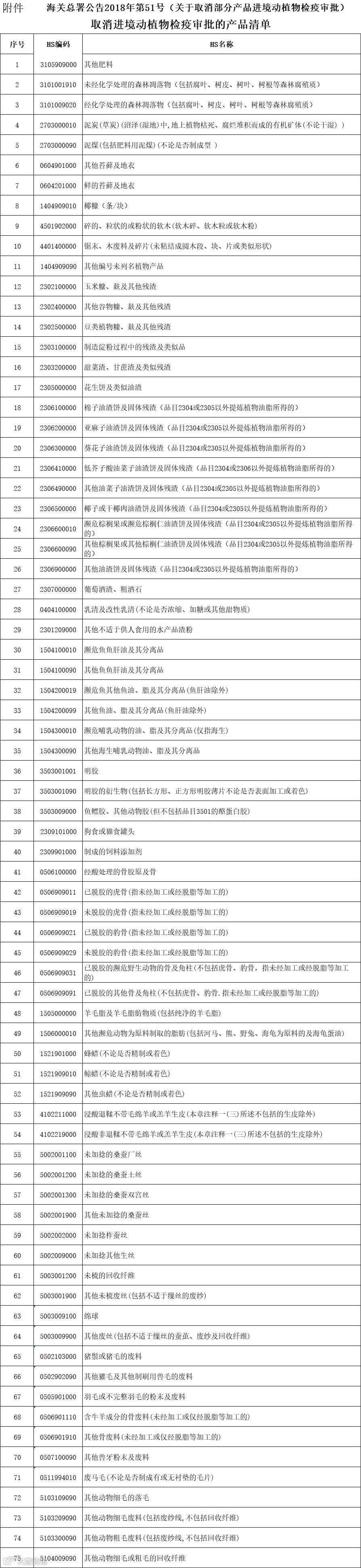 (2)海关总署公告2018年第51号(关于取消部分产品进境动植物检疫审批)