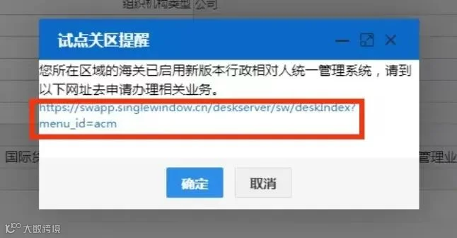 试点地区企业在录入行政区划并选择所在地海关后,会自动弹出提示,跳转至新界面进行后续操作。