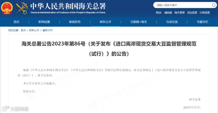 海关总署公告2023年第86号