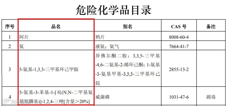 化学品正式名称应与《危险化学品目录》(2015版)的“品名”栏一致。