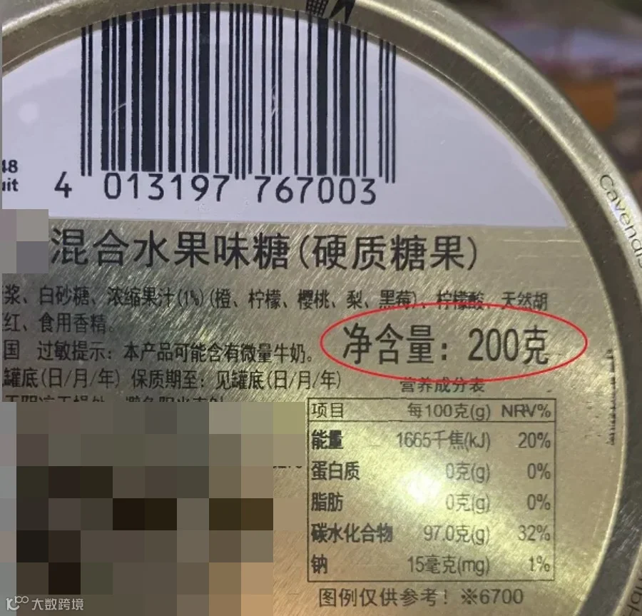 ——包装总表面积≤100平方厘米或最大表面面积≤20平方厘米的食品;
