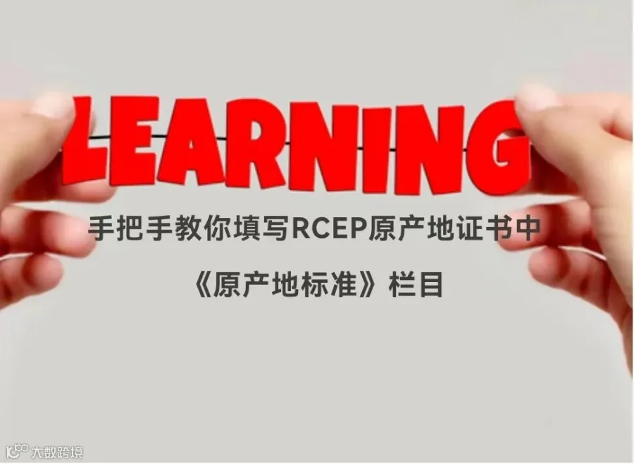 通常在原产地证书中,原产地标准会有专门的栏目。例如:中国-东盟原产地证书第8栏;《区域全面经济伙伴关系协定》(RCEP)原产地证书的第10栏等等,栏目标题一般有“ORIGIN CRITERION”或“ORIGIN CONFERRING CRITERION”等字样。