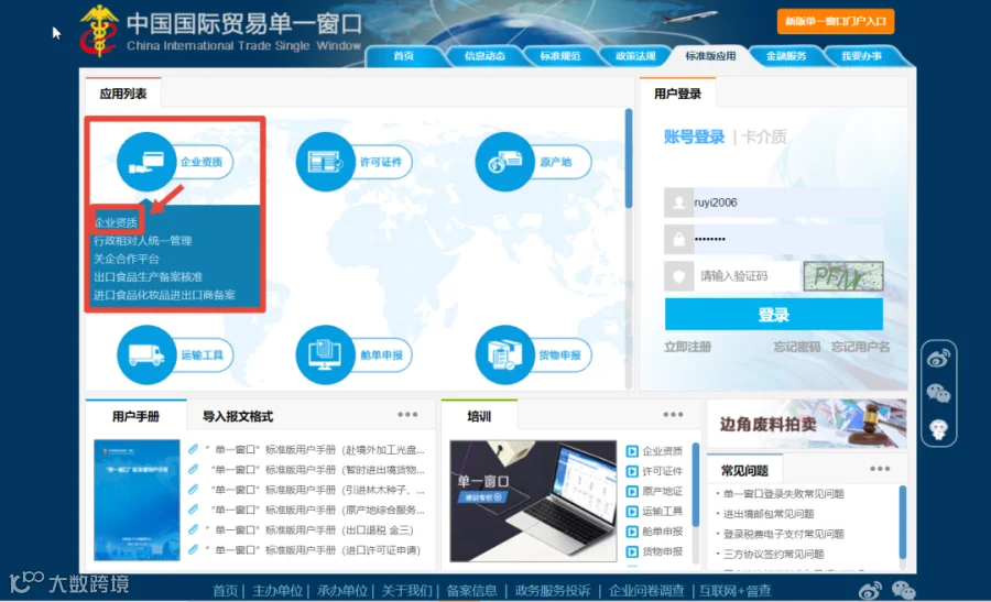 点击“标准版应用”-“企业资质”-“海关企业通用资质”,以已备案企业登录。
