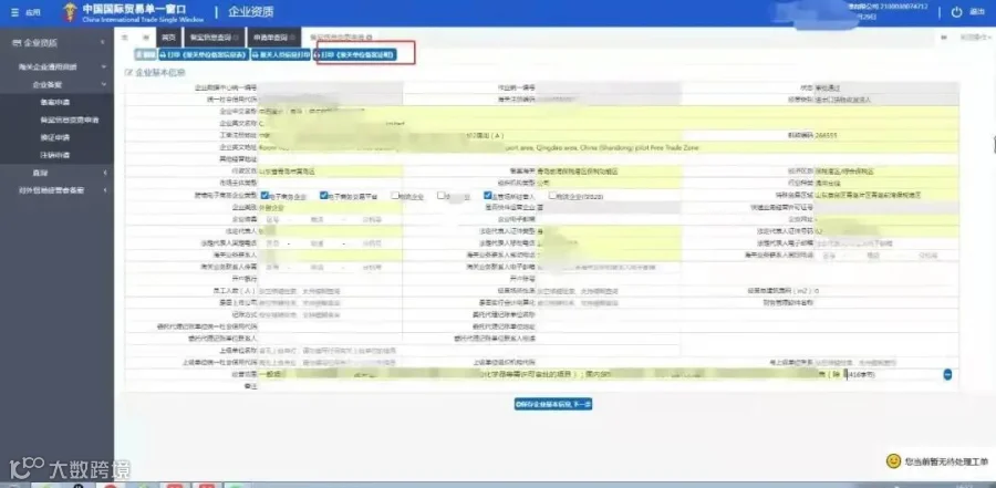 备案申请经所在地海关审核通过后,企业可通过中国国际贸易“单一窗口”自助打印《报关单位备案证明》。