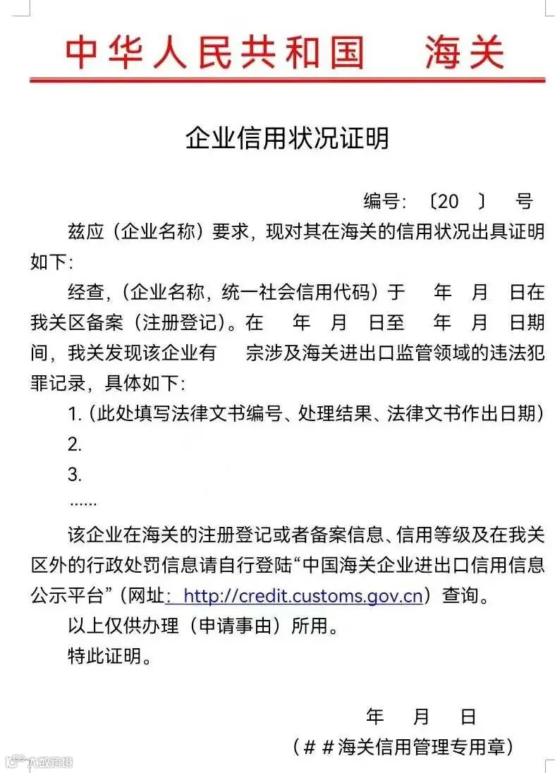 2.要求海关出具企业信用状况证明的相关文件。