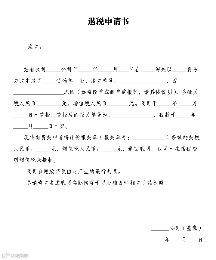 1.申请时效:纳税义务人自缴纳税款之日起1年内,可以向海关申请退还多缴的税款