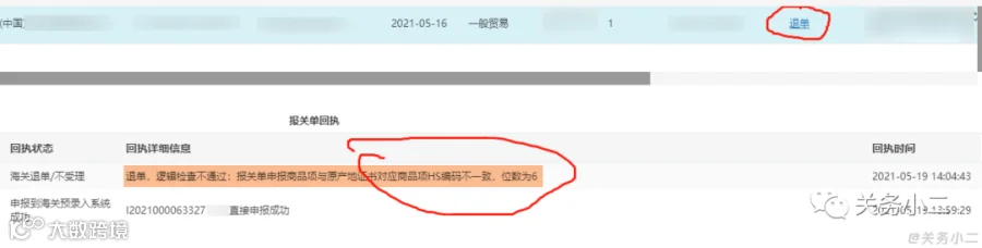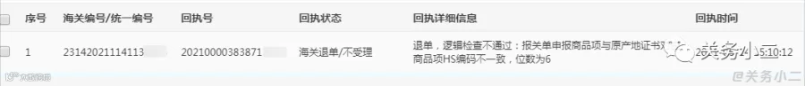 经沟通排查,造成上述退单的原因是:在中国电子口岸“优惠贸易协定原产地要素申报系统”中(网址:https://i.chinaport.gov.cn/deskserver/sw/deskIndex?menu_id=noc),企业填报的HS编码非6位,而是写成了4位或10位。故造成该退单提示。