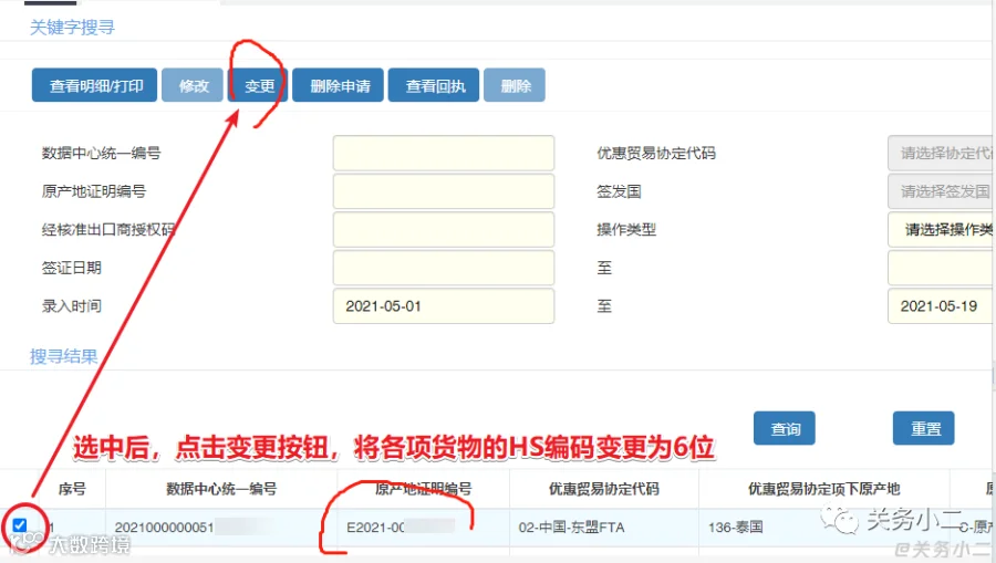 退单提示“报关单申报商品项与原产地证书对应商品项HS编码不一致,位数为6”解决办法: