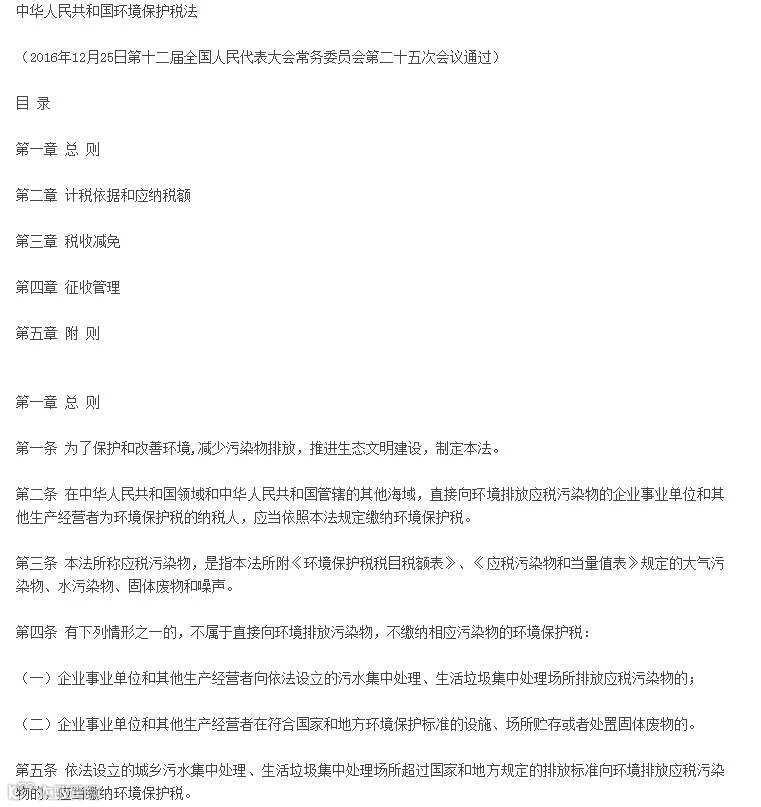 江苏:大气污染物和水污染物中的主要污染物征收标准分别是每污染当量4.8元和5.6元。基本遵循“税费平移”。(尚未通过省人大表决)