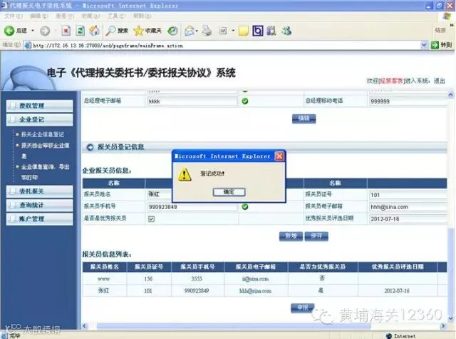 e. 点击新增按钮,可以增加多个企业报关员信息